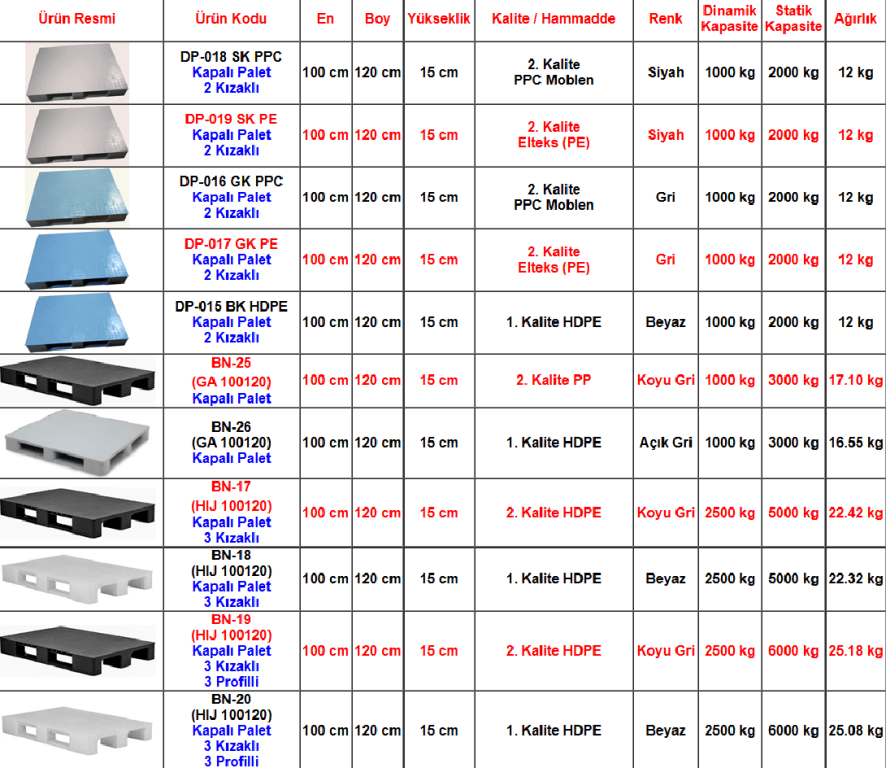 | Ürün Kategorisi | : | Plastik Palet |