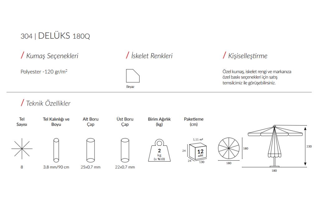 ⭐ Çap: 180 cm genişliğindeki yuvarlak tasarımı ile geniş bir gölgelik alan sunar.