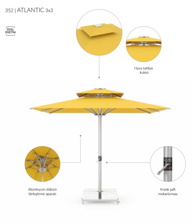 ⭐ Tek direkte azami koruma alanı sağlayan Atlantic şemsiye, alüminyum döküm birleştiriciler ile sertleştirilmiş alüminyumdan mamul iskelete sahiptir.