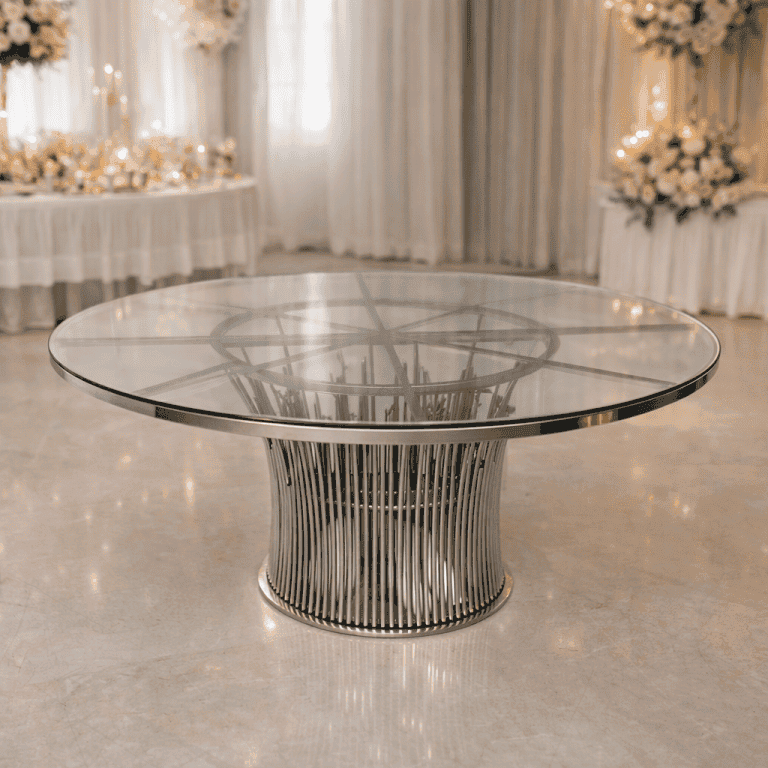 ⭐ Şıklığı ve zarafeti bir araya getiren yuvarlak cam davet masası, özel davetler, toplantılar ve otel-restoran dekorasyonları için ideal bir seçimdir. Temperli cam yüzeyi ile hem dayanıklı hem modern bir görünüm sunar. Ahşap veya metal ayak seçenekleri sayesinde her tür mekan dekorasyonuna kolayca uyum sağlar.