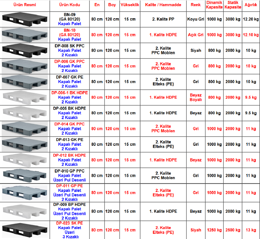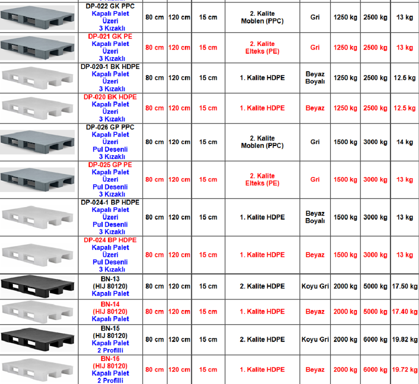 ⭐ Kapalı yüzey tasarımı sayesinde ürünlerin güvenli taşınmasını sağlar, kolay temizlenir ve nem tutmaz. Ahşap paletlere kıyasla daha uzun ömürlü ve çevre dostudur.