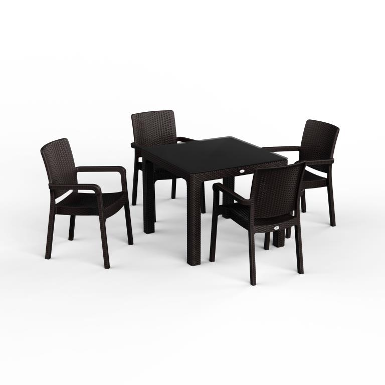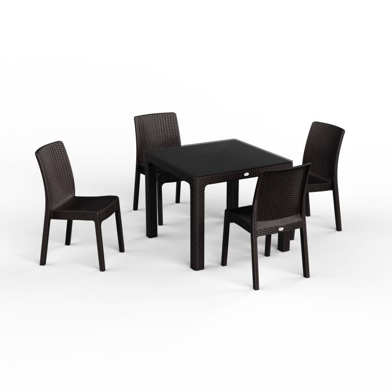 90x90 cm Rattan Masa Takımı Camlı Eko