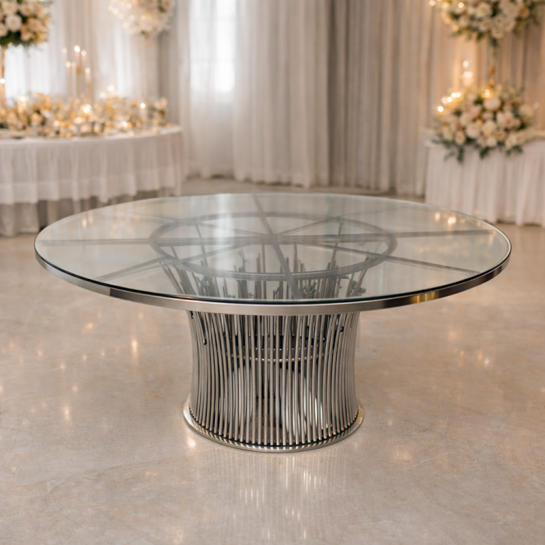 ⭐ Şıklığı ve zarafeti bir araya getiren yuvarlak cam davet masası, özel davetler, toplantılar ve otel-restoran dekorasyonları için ideal bir seçimdir. Temperli cam yüzeyi ile hem dayanıklı hem modern bir görünüm sunar. Ahşap veya metal ayak seçenekleri sayesinde her tür mekan dekorasyonuna kolayca uyum sağlar.